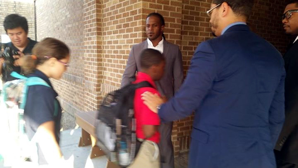 Skyra Rideaux, the executive director of the Lafayette Community Health Care Clinic, arranged to have a group of successful minority men greeting students along with new principal Allison El Koubi and other administrators as they arrived Thursday morning (images below). The gentleman involved were Jasper Faulk, Langston Faulk, Christopher Bernard, Ruben Henderson and Shawn Bernard.