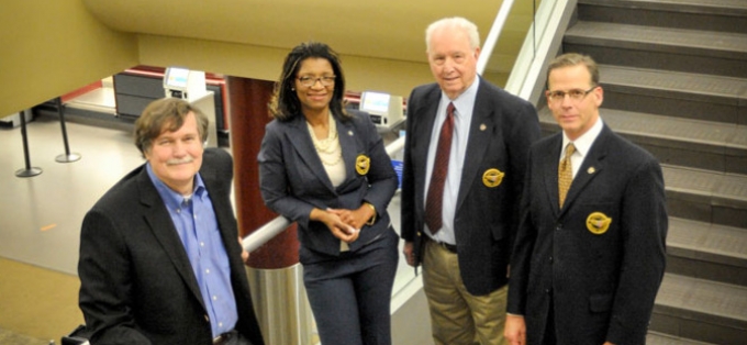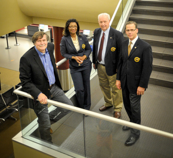 Larry Sides, left, with airport commissioners Valerie Garrett, Paul Guilbeau and Tim Skinner