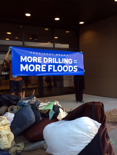 The four he identified as having been arrested had said earlier that they would stay until they got a response from President Barak Obama — or until they were arrested. The president was visiting the Baton Rouge area Tuesday to survey flood damage.