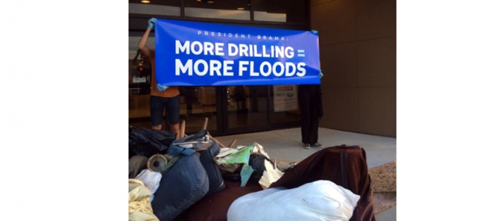 The four were among about a dozen protesters who walked to the Bureau of Ocean Energy Management office building with a copy of an online petition they said had garnered 184,000 electronic signatures in six days. They want an end to all new drilling in the Gulf of Mexico.