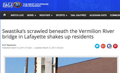 “Swastika’s scrawled beneath the Vermilion River bridge in Lafayette shakes up residents" — really kind of muddies what's actually going on here.