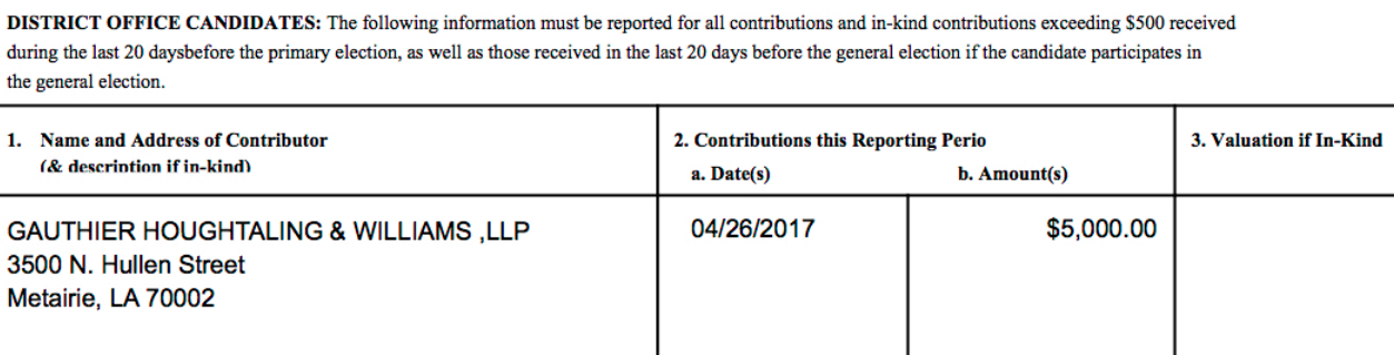 We can assume Perret breathed a sigh of relief after this week's hearing, and it seems Houghtaling was rather pleased with attorney Williams' performance as well, as Gauthier Houghtaling donated $5,000 to the Perret campaign Wednesday.