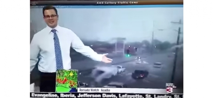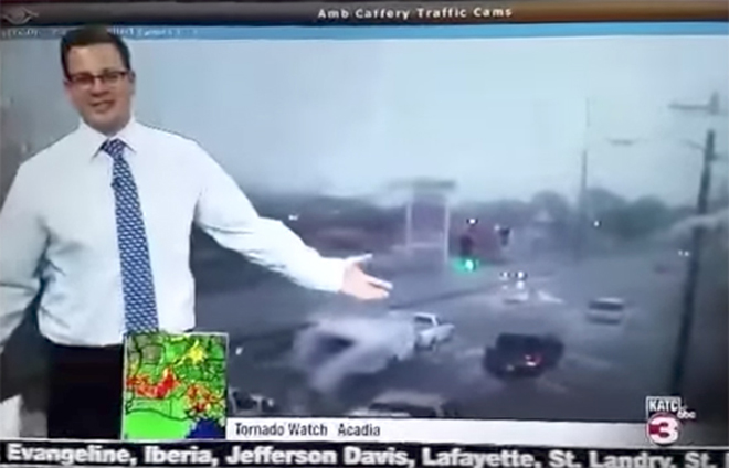 KATC meteorologist Daniel Phillips is enjoying a bit of viral fame today following a rant about motorists who drive through floodwaters on city streets, pushing water into adjacent buildings. Standing in front of a live stream from the intersection of Ambassador Caffery and Dulles Drive, Phillips is perturbed and mildly scolding in his assessment of the situation. Clearly he has ranted about this before. (Whoever filmed the segment gets over their anxiety and steadies the camera about 10 seconds into the clip, so bear with it.)