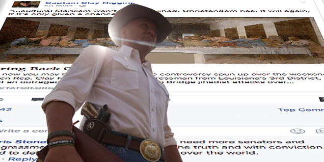 I was slightly alarmed at first. I asked him if that was a threat, to which I got no reply. And to threaten a constituent on Facebook is just cowardly. His extreme religious views have no place in our secular, democratic government. I think he should focus on getting help for his district, which includes some of the poorest, most illiterate and at-risk Americans in the entire nation. He should stop with his fear-mongering videos and hate-filled rhetoric about things that really aren’t the problems facing his constituents in Louisiana. I’d say, take off the costumes, put down the guns and start doing some real work to help us move forward in Louisiana.