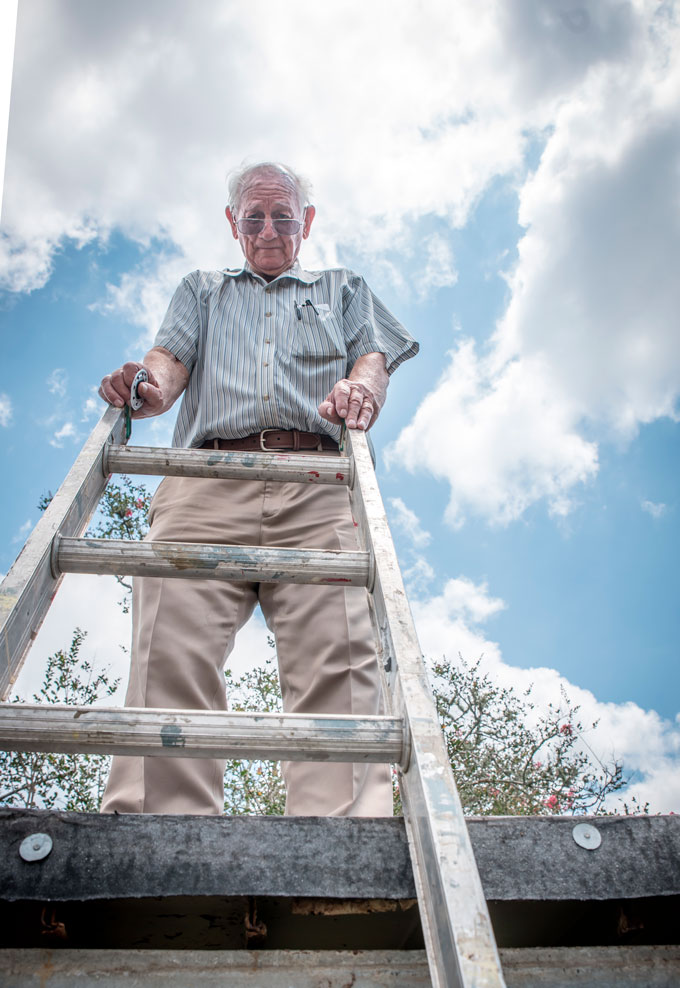 At 87, Baudoin is almost as venerable as the Lafayette roofing company that hired him as a helper in 1963 for a buck and a quarter an hour. He was 33 years old at the time, with a wife and three kids. He had been laid off after nine years as a railroad fireman, and while $1.25 an hour wasn’t much, it was enough to get by. His kids are grown, but he and Nell, his wife of 66 years, still live in the house they raised the kids in just north of Maurice in south Lafayette Parish.